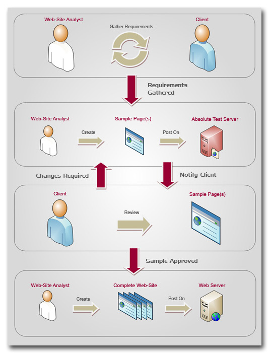 - Once all requirements are gathered, a sample site will be posted on our test server and shown to you for final approval.